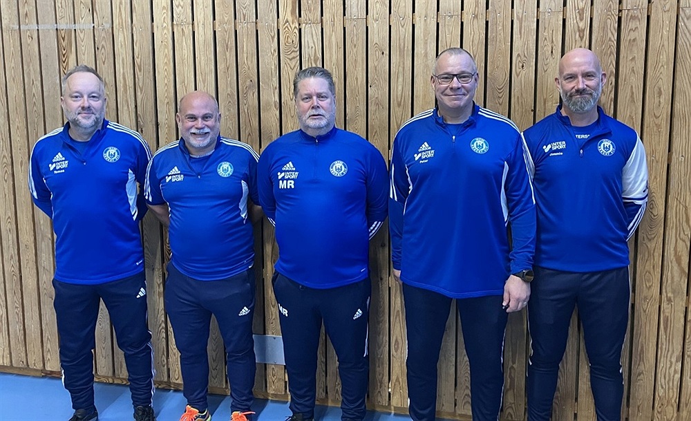Huvudtränare Mats Rydell flankerad av sina assisterande tränare Tomas Martinsson, Johan Larsson, Peter Torstensson och Jimmie Hagman. Foto: Privat